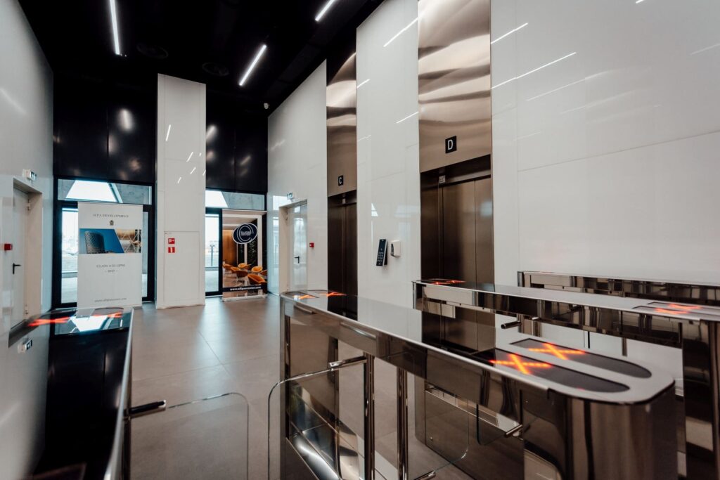 - 4 modern passenger elevators (speed 1.6 m/s) with access control and destination control system, plus 2 service elevators